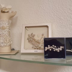 Entdecke in meinem Brautatelier eine grosse Auswahl an Schleppennadeln, Halsketten, Ohrringen, Perlenschmuck oder dekorativen Haarschmuck.