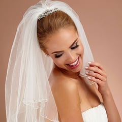 Ein- und zweistufige Schleier mit eleganter Kurbelkante. Attraktives, geschmackvolles Design für den schönsten Tag im Leben. Auch mit Swarovski Kristallperlen in Handarbeit verziert, und Vieles mehr.